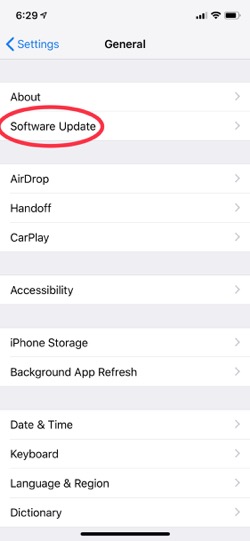 This is pretty easy to do these days because the latest operating system (iOS 12) can automatically install updates for you. That way you don’t have to think about it. To make sure this is turned on, go to Settings on your iPhone or iPad, and then tap General and then tap Software Update: