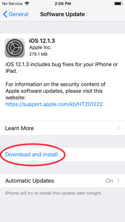 In that case, after you turn on automatic updates as described above, your device will automatically install this update for you later, or you can tap Download and Install if you want to install it now.