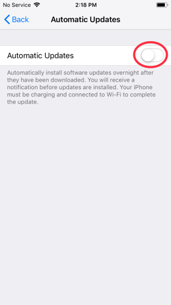 If Automatic Updates is listed as off, tap on it and then tap the switch to turn it on: