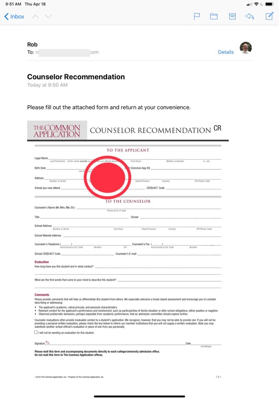 Open the email containing the form and tap the form to open it. Sometimes attachments are shown as an icon: