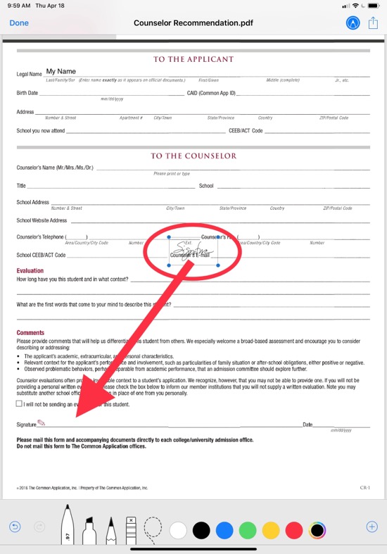 To quickly sign the form, use your finger or the Apple Pencil to sign the form: