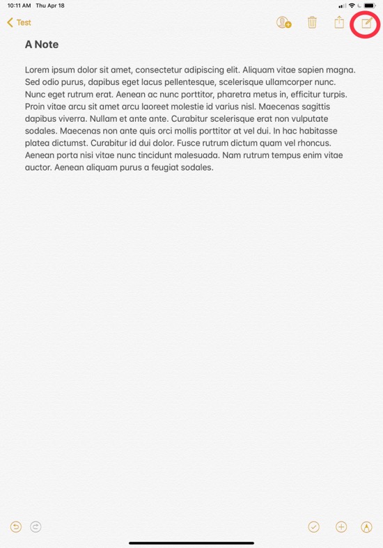 Start the Notes app and tap New Note: