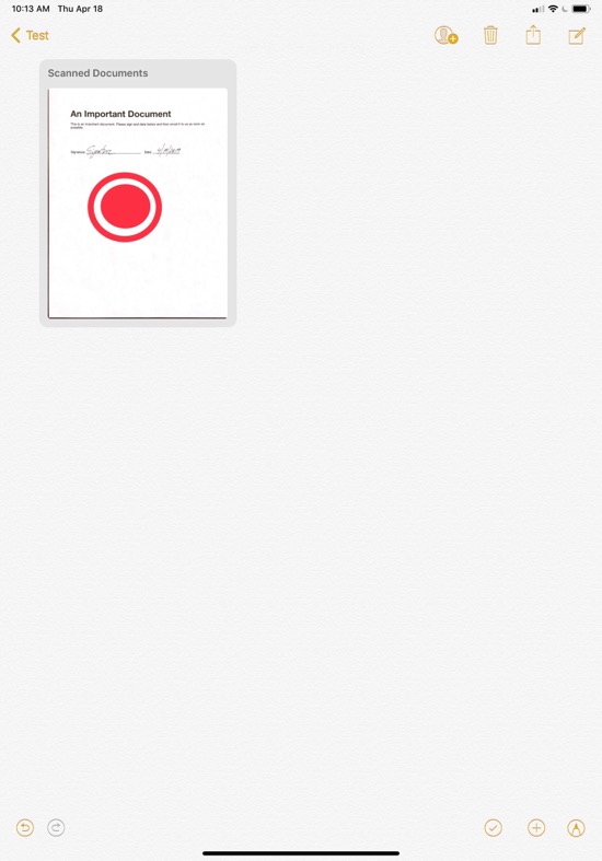 The scanned document will then be added to the note:
