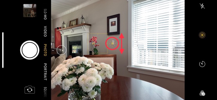 Once you set the focus area, you can also tweak the exposure by dragging the exposure control up or down before taking the photo: