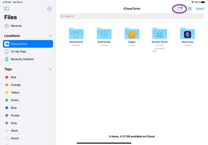 From the sidebar, tap either iCloud Drive or On My iPad, depending on where you want to store your records, then tap the New Folder icon in the upper right of the screen.
