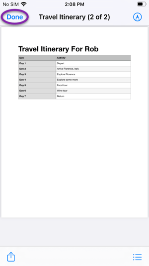 When you have finished viewing the file, tap Done in the upper left: