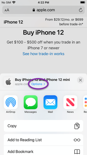 At the top of the Share Sheet, tap Options and choose PDF.