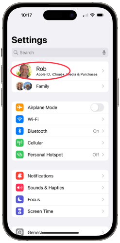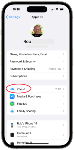 To see if you’re subscribed to iCloud+, go to Settings, tap your name at the top of the list, then tap iCloud: