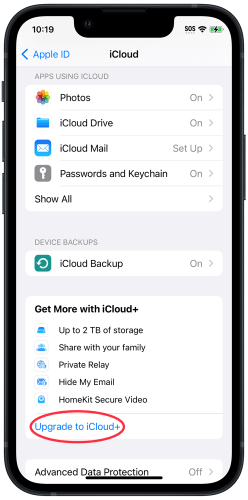 If you’d like to subscribe to iCloud+, tap Upgrade To iCloud+ from the iCloud screen and choose the storage plan that you’d like: