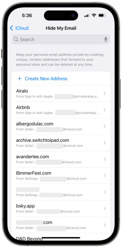 Apple’s Hide My Email feature creates separate, unique email addresses to use with specific websites, apps, and email recipients. Emails that are sent to these addresses are still delivered to your regular inbox, but your real email address remains hidden. These email addresses are saved across all your devices so you don’t have to remember them, and the best part is you can turn them off if they start to get unwanted emails.